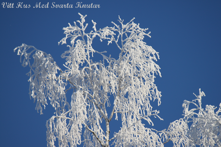 Trädtopparna på björkarna är tjocka av rimfrost och en svag vind får grenarna att sakta röra på sig så att de gnistrar som om de vore klädda med tusentals diamanter...det är sååå vackert...